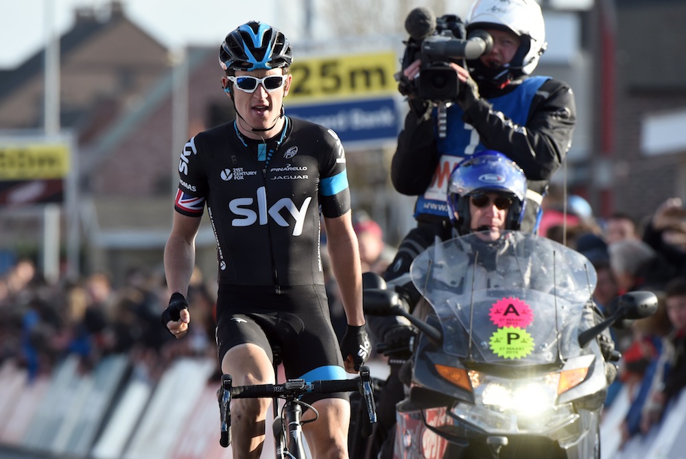 The classics season has been continuing with riders gearing up for this weekend’s Tour of Flanders. First up was E3 Harelbeke, the tough and cobbled route using many of the same Flanders roads. The race came down to three escapees and a group of elite chasers. In front were Geraint Thomas, Zdenek Stybar and reigning champion Peter Sagan. An early crash had sent a handful of riders for hospital checks and the biggest name out was Fabian Cancellara- the seven time Monument winner is now ruled out for the rest of the spring. Harelbeke looked to be heading to a similar conclusion as 2014, where Sagan sprinted home from a lead group, but this time around the Slovakian champion was asked questions by Thomas over 5km out and had no response to his acceleration. Stybar, too, was unable to catch the Welshman’s wheel but held on for second half a minute back. Sagan had no such legs and was swallowed up by the chase group, finishing a wayward 30th. Thomas looked strong and continues to give Sky a brilliant classics option, his attack was well timed and his pursuit strength showed in the final kilometres.