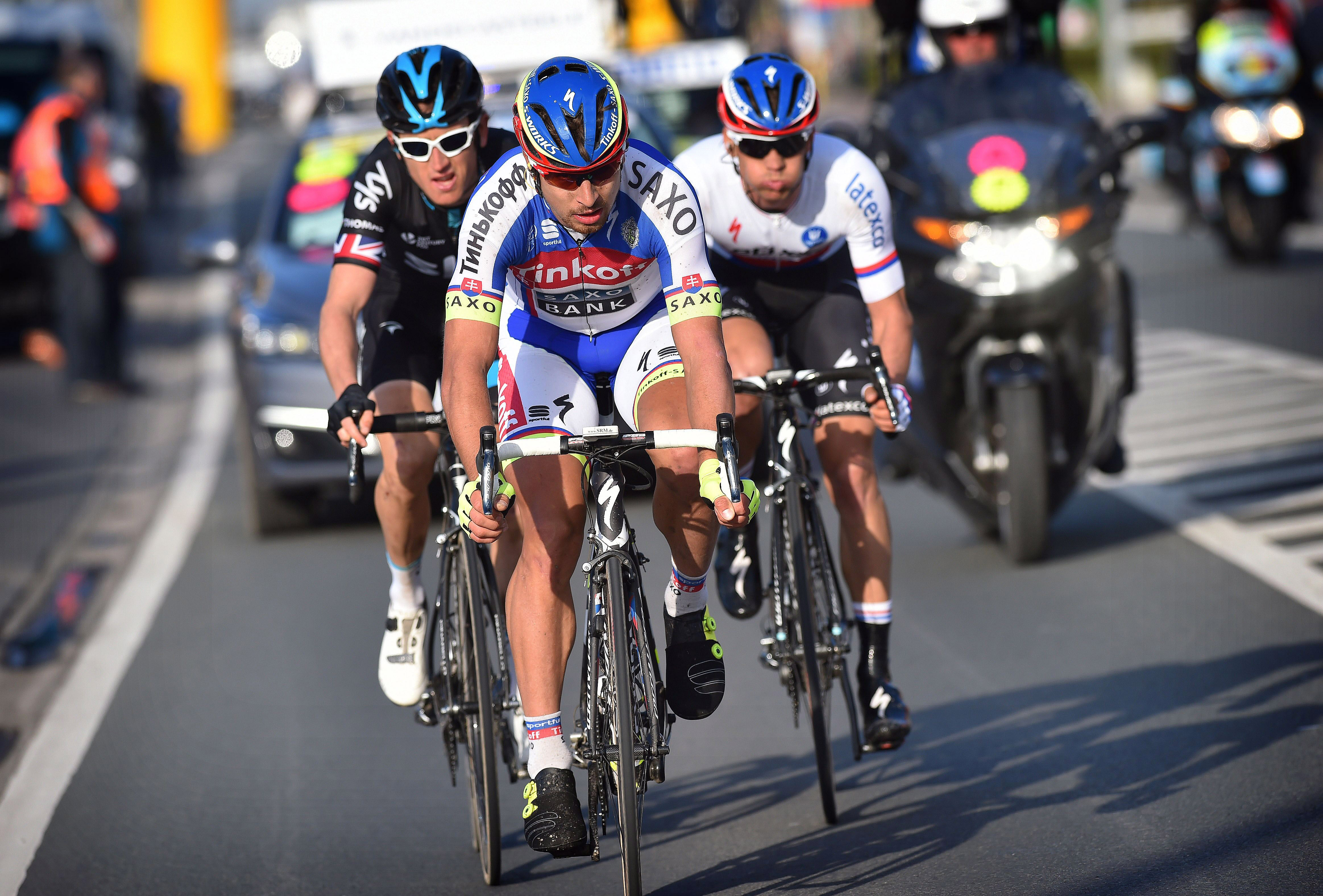 Though in a strong front trio with Geraint Thomas and Zdenek Stybar, Sagan crumbles under the Welshman’s attack and cannot even hang on for a podium finish. He is eventually passed by the chasing pack and finishes 30th.