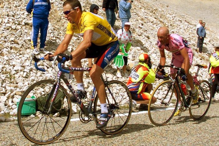 Despite being one of the most anticipated pro cycling visuals of all-time, the finish of Marco Pantani vs. Lance Armstrong on Mont Ventoux annoyed everybody. Pantani harboured limited GC ambitions due to ill-preparation, a year of doping controversy, and the aforementioned TTT. He did, however, carry a fierce reputation as the best climber in the world. Pantani attacked on Ventoux and dizzied the top ten, save for Big Tex. As the two approached the top, Armstrong and Pantani exchanged words (in broken Italian, according to Lance) before Il Pirata rolled over the line to become the first Italian to win atop the mountain.
